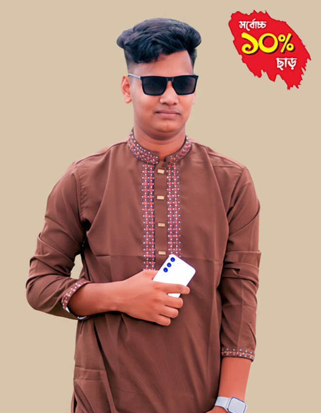 “আভিজাত্য আর ঐতিহ্যের মিশেলে তৈরি আমাদের এই বিশেষ পাঞ্জাবি। প্রিমিয়াম কোয়ালিটি ফেব্রিক আর নিখুঁত কারুকাজ আপনাকে দেবে এক রাজকীয় লুক। উৎসব কিংবা যেকোনো অনুষ্ঠানে নিজেকে অনন্য করে তুলতে আজই সংগ্রহ করুন।”